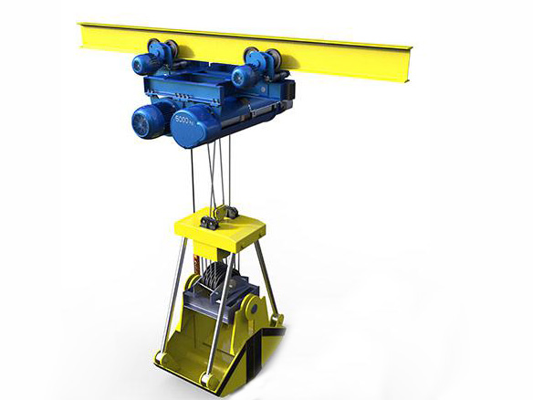 CD/MD型抓斗電動葫蘆往往與懸掛小車、承載梁、四繩抓斗等相連接組成一種架空運(yùn)輸裝置(即抓斗起重機(jī)),可以不占場地,僅靠架空軌道運(yùn)行的懸掛式架空小車來實(shí)現(xiàn)工段與工段之間、車間與車間之間、工廠與工廠之間的大量散粒物品的裝卸和運(yùn)輸。