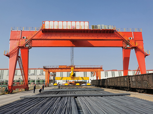 它的金屬結(jié)構(gòu)像門(mén)形框架,承載主梁下安裝兩條支腳,可以直接在地面的軌道上行走,主梁兩端可以具有外伸懸臂梁。